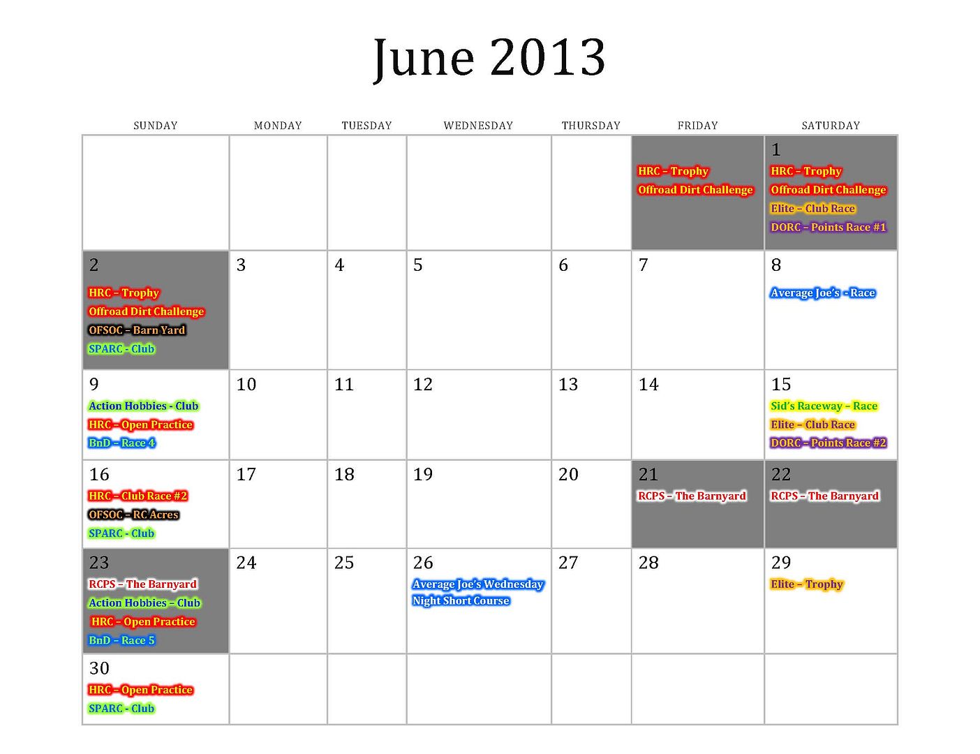 2013 Summer Offroad Race/Event Calendar - Updated June 25th, 2013