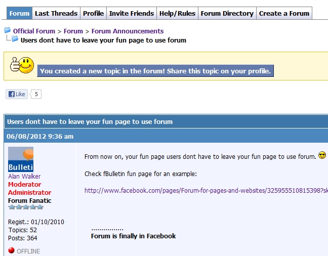 fBulletin is a special forum software developed for social networks. You can add forums to your pages and websites.