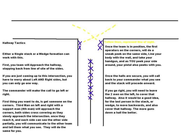 Once the team reaches the end, you will send either a left or right side up, to secure the door at the end of the hallway, then you reform your stack, and make your exit from the hall.