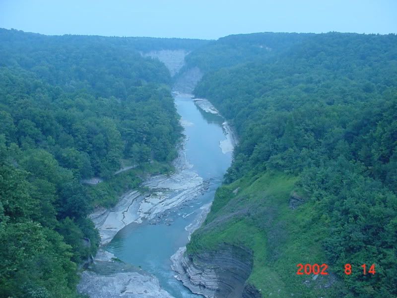 This is a pic of the Gorge from the Portage Bridge which replaced the largest wooden bridge in the world. Built in 1852. 300 acres of timber used in construction. Burned in 1875.