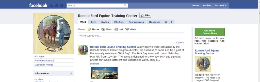 http://www.facebook.com/pages/Ronnie-Ford-Equine-Training-Center/123913230987189?ref=ts