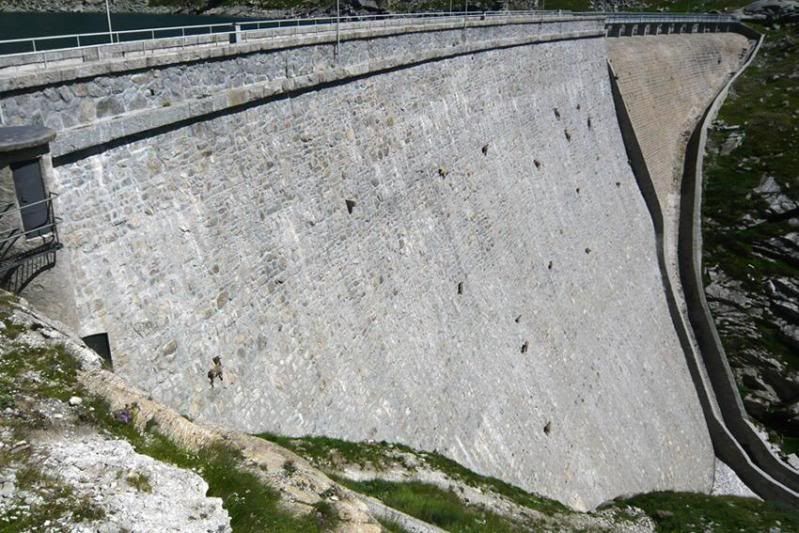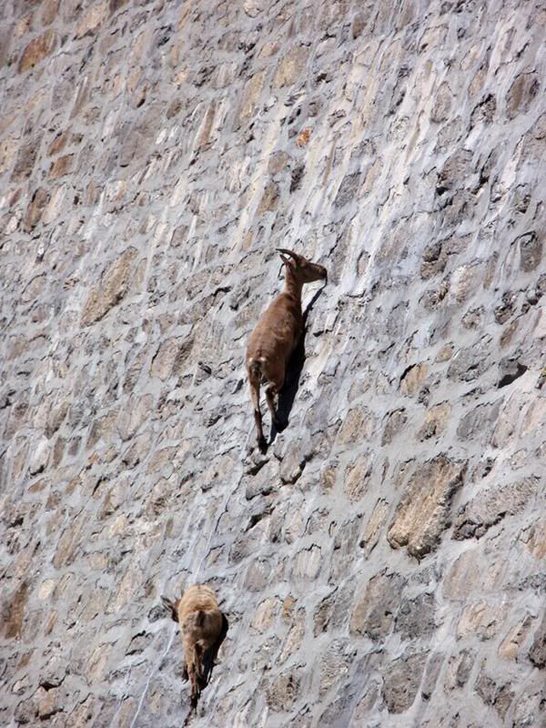 They are Euopean Ibex. They eat the moss and lichen and lick the salt off the dam wall.