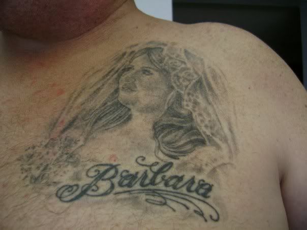 OFFLINE | Originally Posted by Jann Morrison Kostka: Barb's husband has a beautiful tattoo of her..... the only "portrait" tattoo I've ever seen....