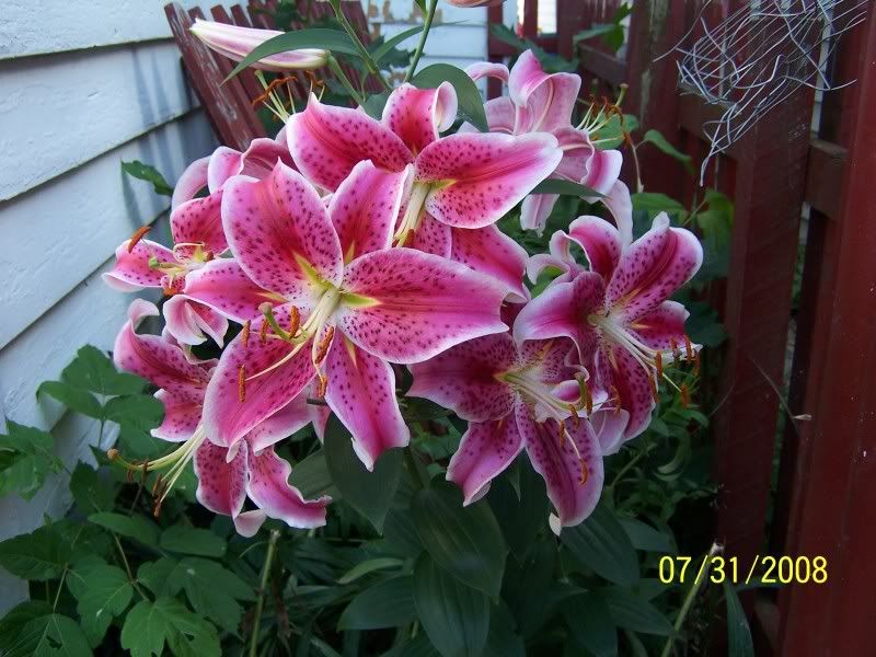 Ok  ,,,, These are my lillies. They're on a back corner of my house and grow each year.