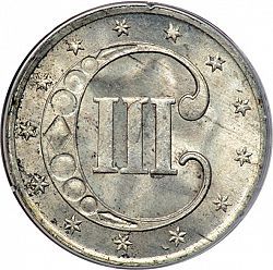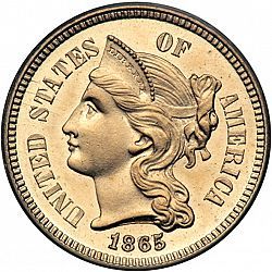 The three cent nickel was only minted in Philadelphia and, except for a larger date on the 1889 pieces, had no design differences throughout its run. Over the course of the series mintage declined, and some of the dates are scarce. But, with an 1865 mintage of over eleven million, a type piece can be inexpensively obtained.