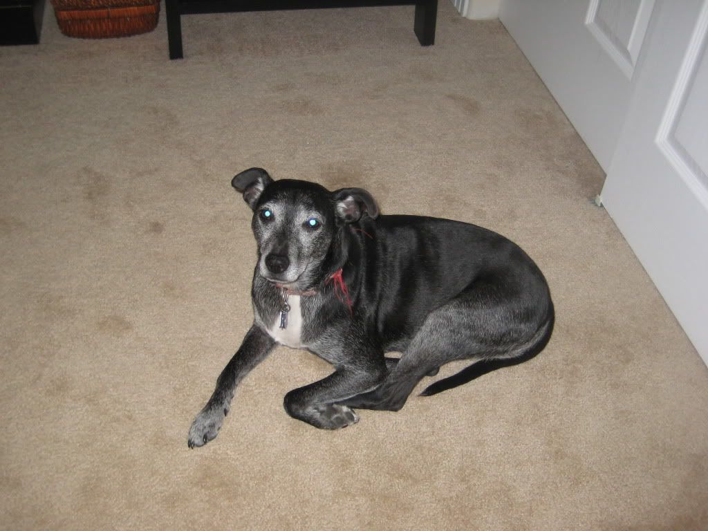 | She's a sweet dog, unless you are elderly or wearing a hat...in which case, you've been warned!